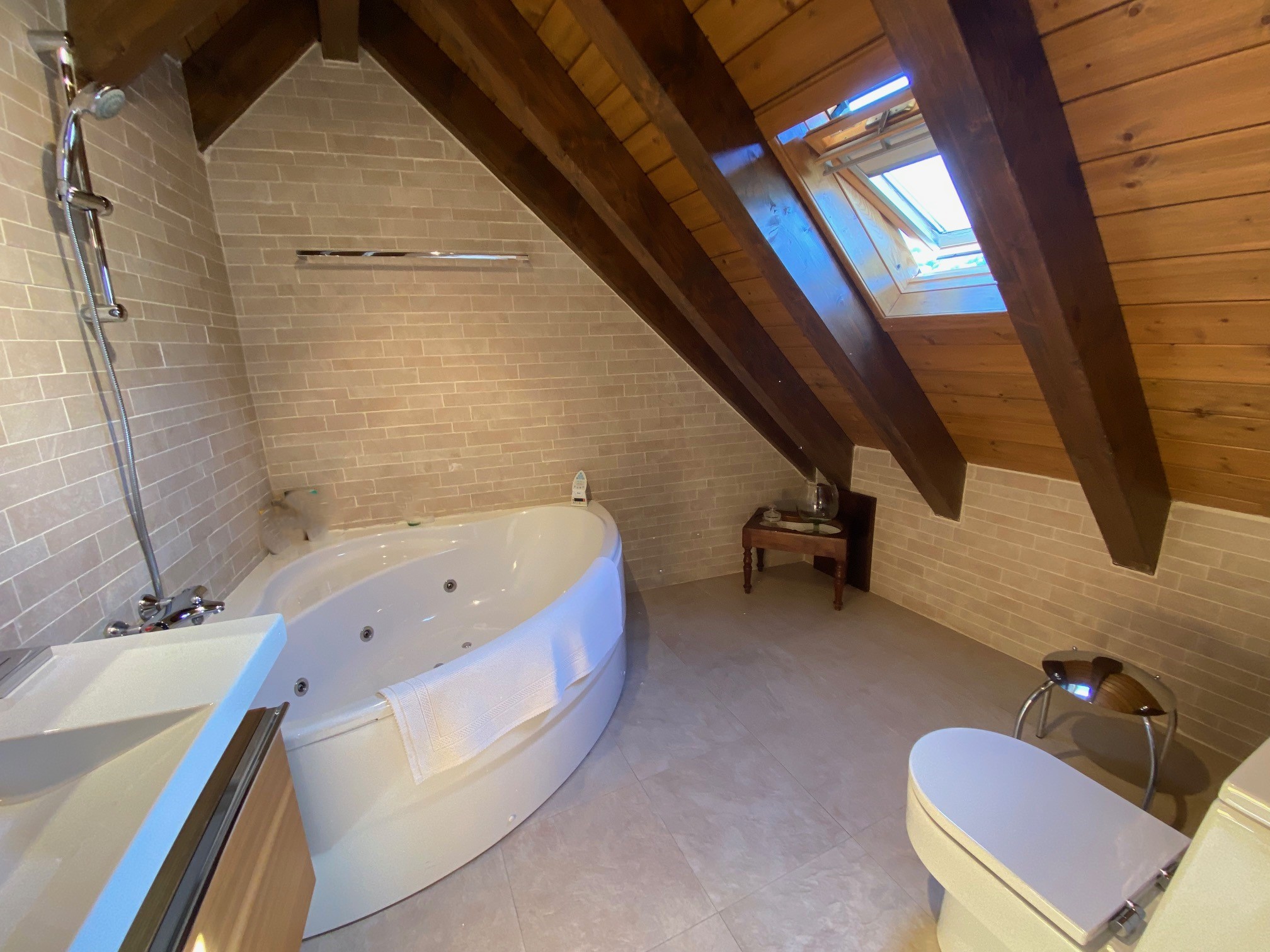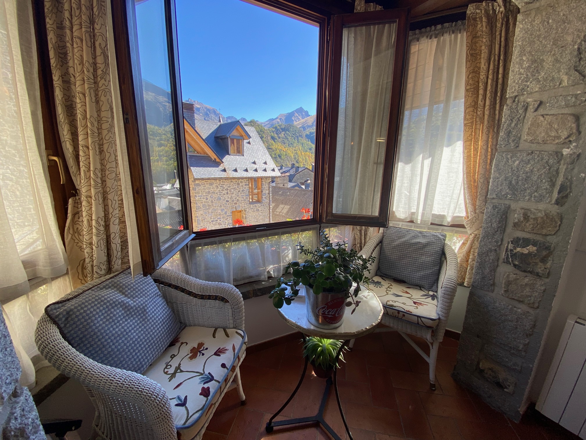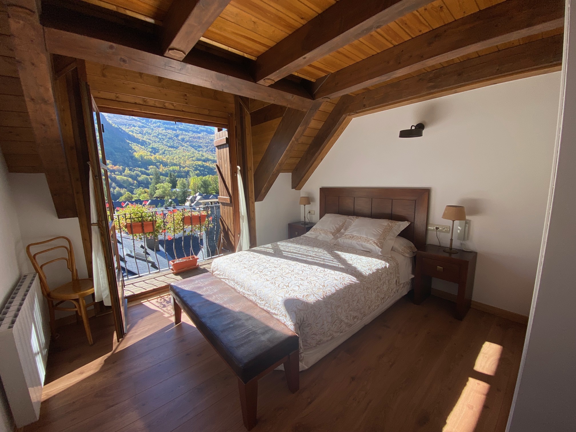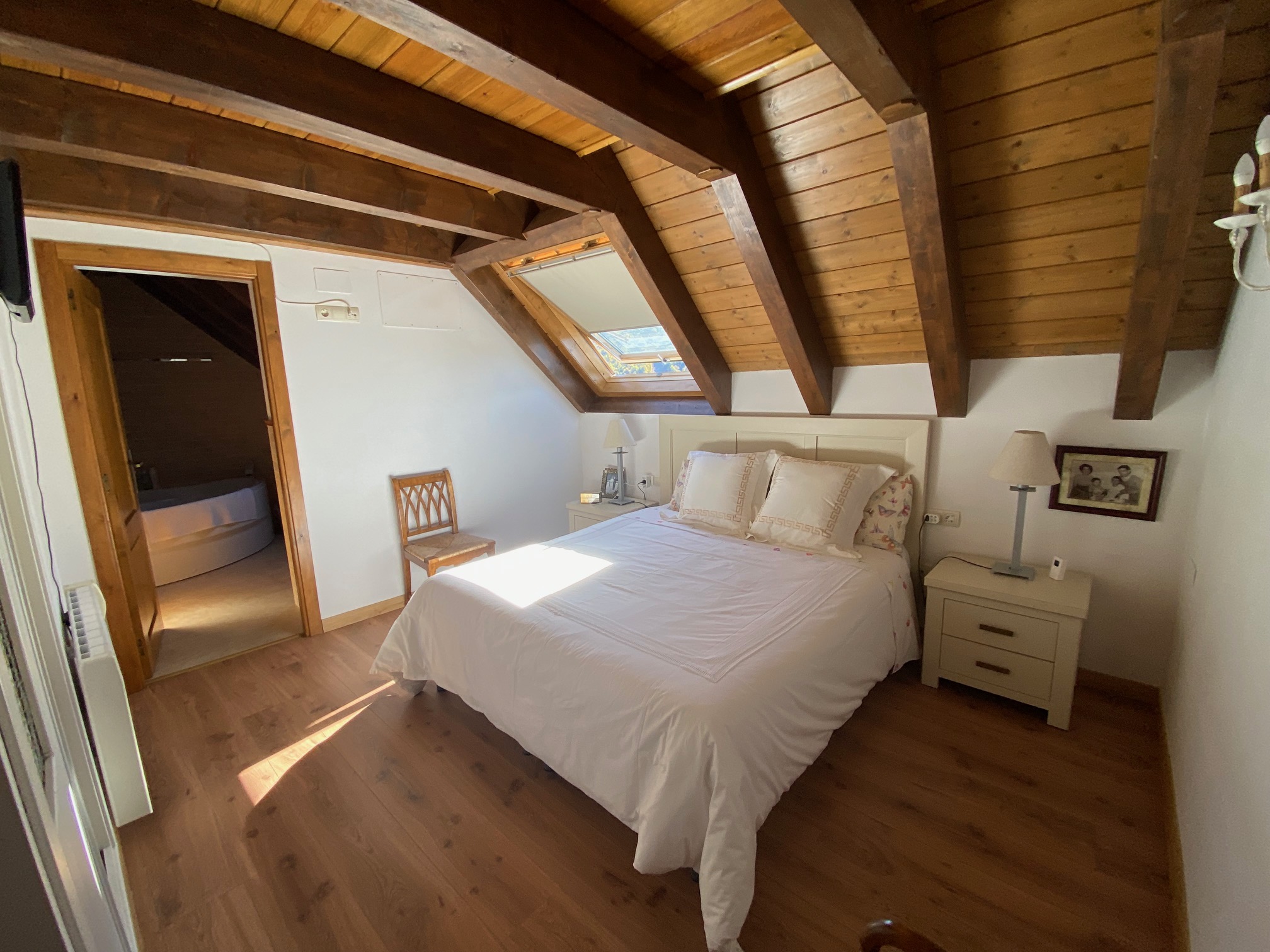 La segunda casa, con entrada independiente, es ideal para huéspedes. Distribuida en dos plantas, cuenta con 2 dormitorios, un salón-cocina y un baño completo. Ambas casas están amuebladas con muebles de primera calidad y equipadas con calefacción eléctrica y chimenea, asegurando un ambiente cálido y acogedor en cualquier época del año.